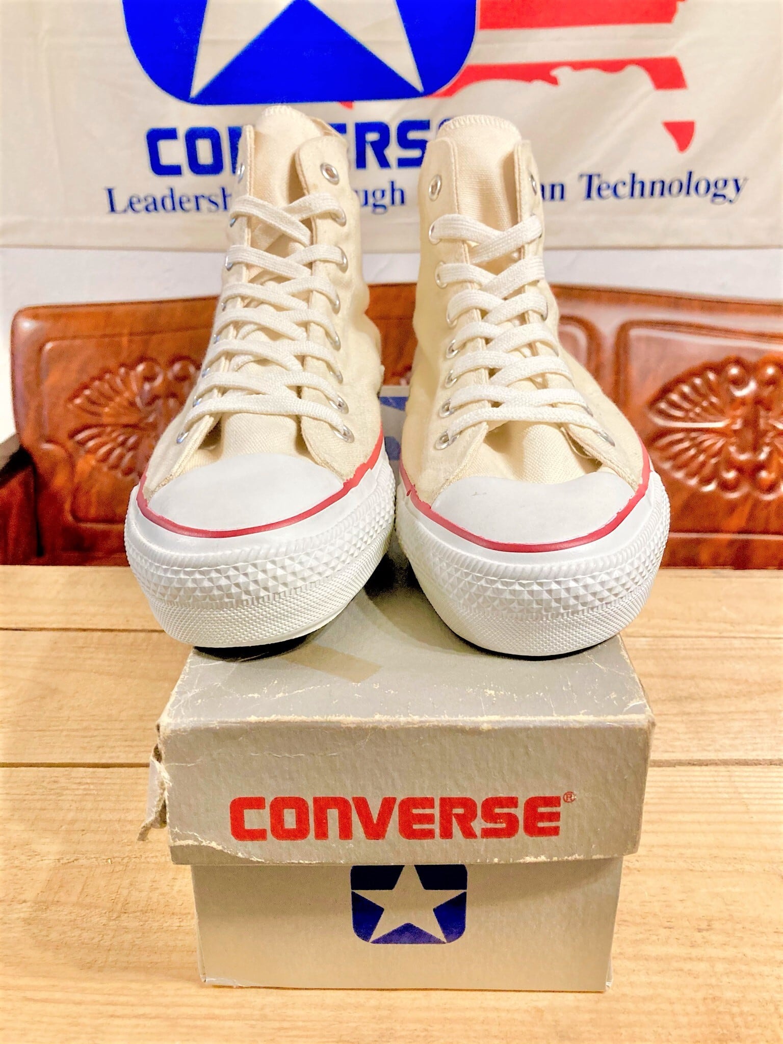 converse(コンバース) ALL STAR Hi (オールスター)生成り 7 1/2 26cm 80s 銀箱 USA あて布有り 216
