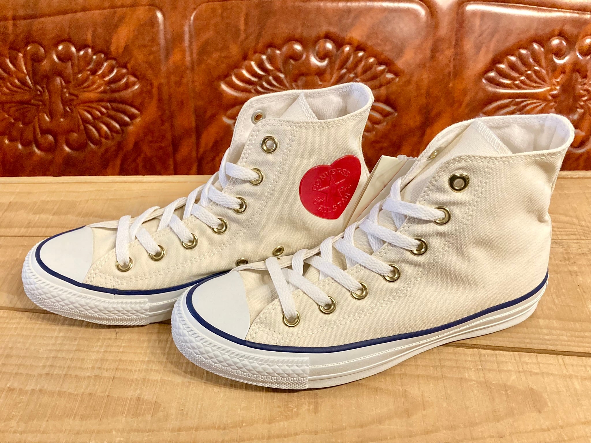 アンクルパッチのコンバースマークと、シューホールの一番上がハートになっています!